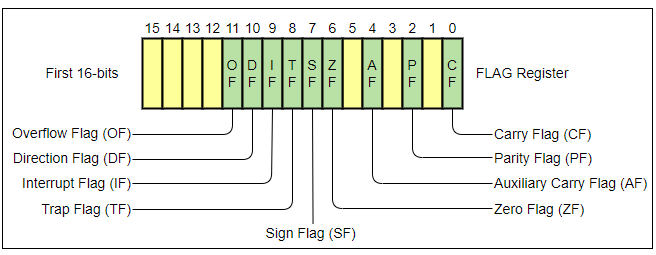 Zero flag (ZF): Bằng 1 nếu kết quả bằng 0.