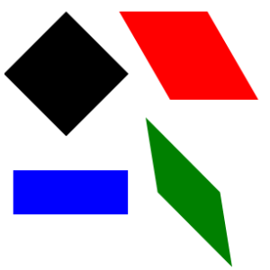 Ví dụ sau đây biểu diễn các đối tượng Transform khác nhau bằng cách áp dụng chúng lên các đối tượng Rectangle khác nhau.