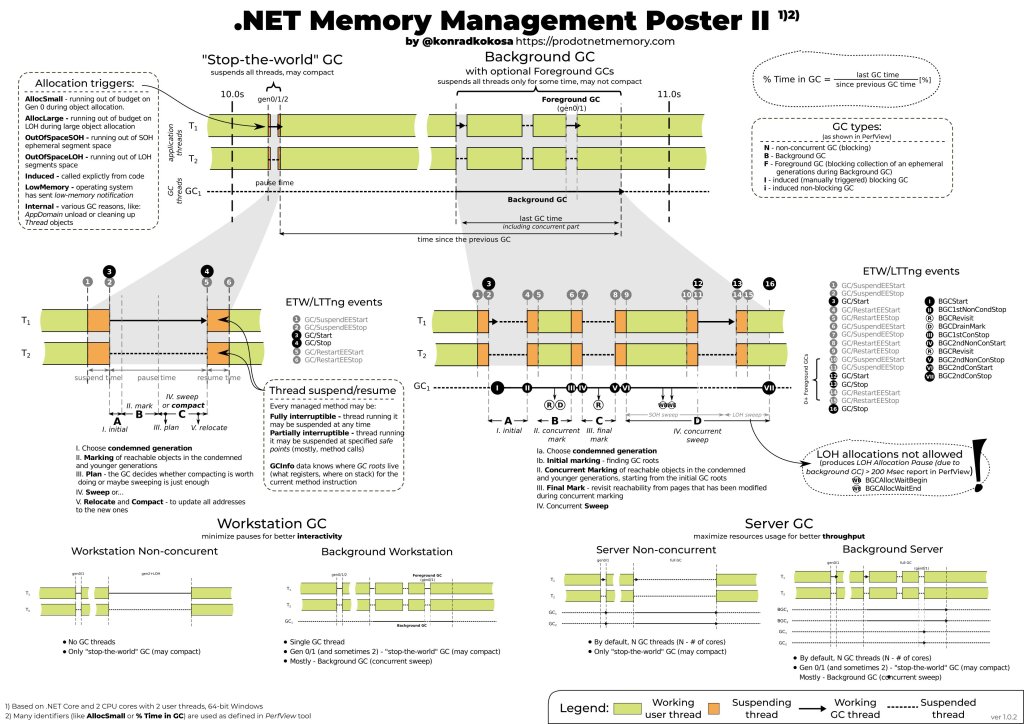 Concurrent — Thực hiện công việc GC trong khi user thread bị tạm dừng — được gọi là Stop-The-World — giúp việc triển khai trở nên đơn giản hơn nhưng thời lượng của những lần tạm dừng này có thể không được chấp nhận. .NET cung cấp khả năng xử lý đồng thời để giảm thiểu vấn đề đó.